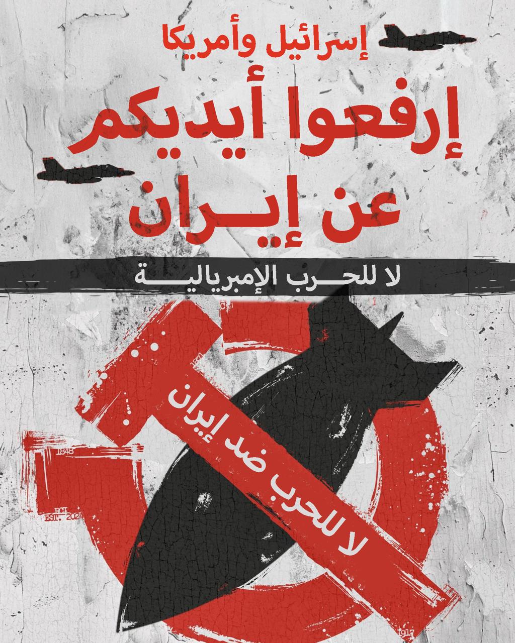 إننا نقف مع الدفاع غير المشروط عن إيران ضد الأعمال العدوانية للإمبريالية الأمريكية ووكلائها الإسرائيليين.